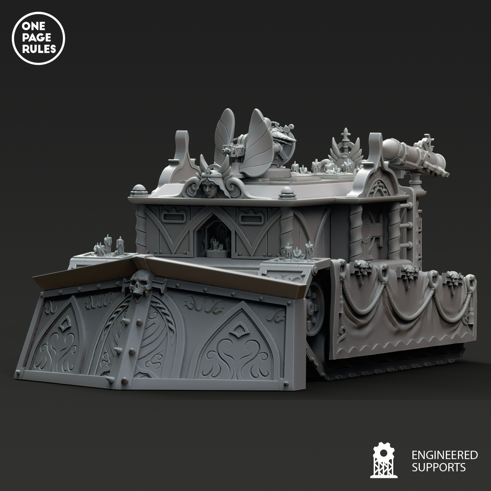 Capable d’embarquer une escouade entière de Fanatics, Warriors ou Superiors, ce transport blindé combine résistance, mobilité, et ferveur mystique. À son passage, les sœurs récitent des litanies, les haut-parleurs diffusent des psaumes, et les encensoirs diffusent des fumées purificatrices dans son sillage.