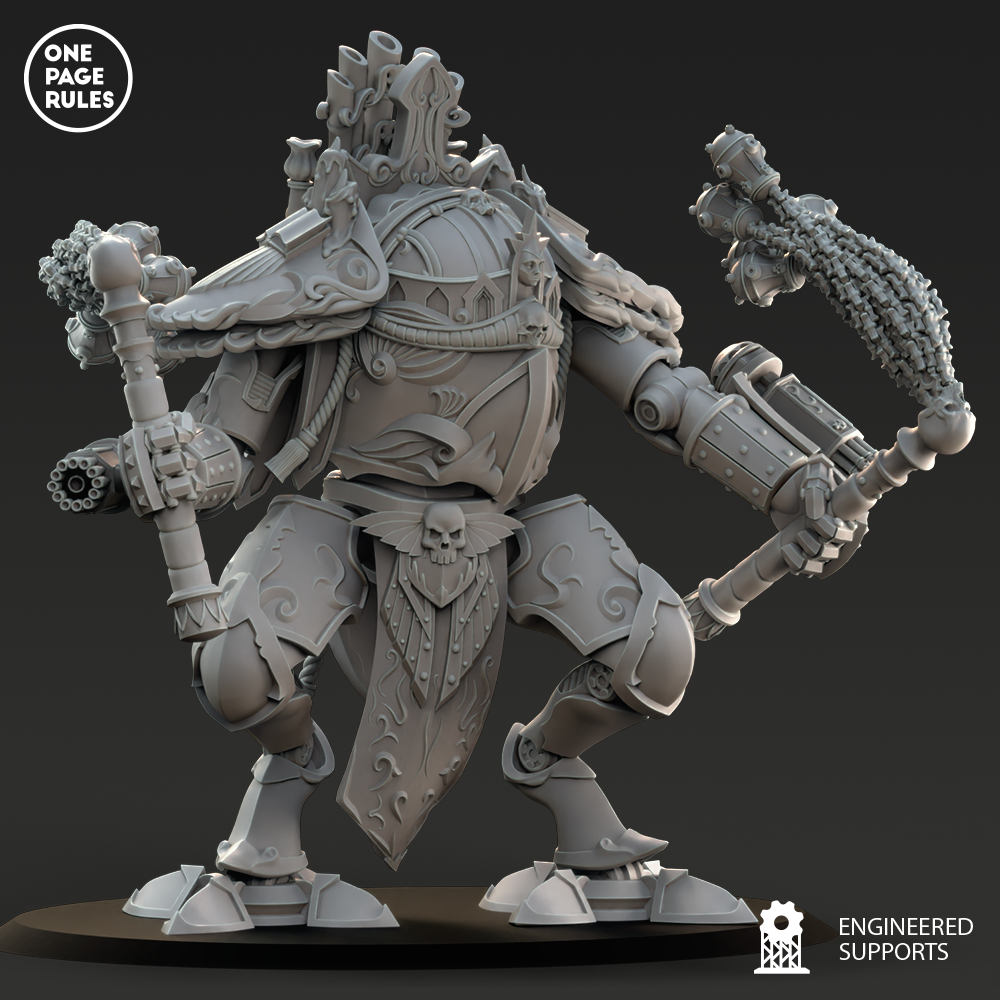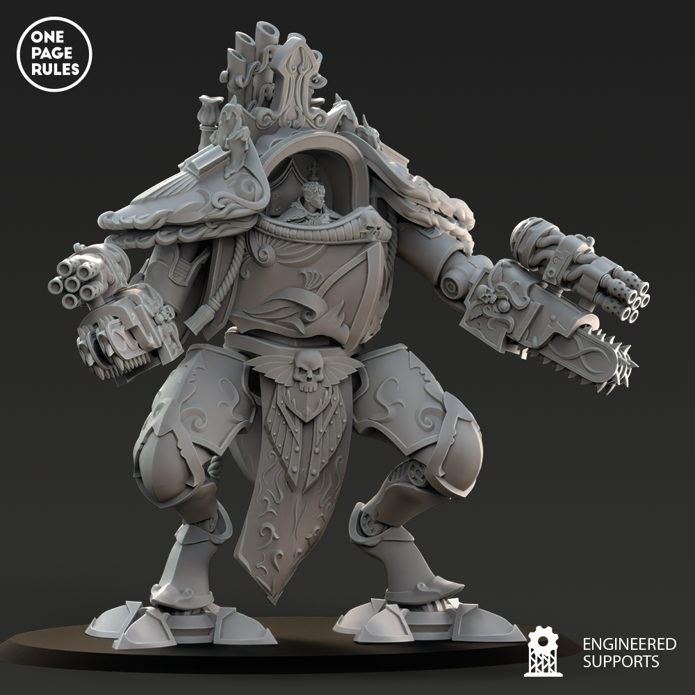 Le Assault Walker des Blessed Sisters est une création sainte de guerre : un exosquelette géant piloté par une sœur fanatique, fusion d’armure, de technologie sacrée, et de haine purificatrice. Conçu pour avancer sans crainte, frapper sans hésitation et encaisser sans plier, ce marcheur lourd porte la parole de l’Empereur non par des sermons, mais par des impacts dévastateurs.