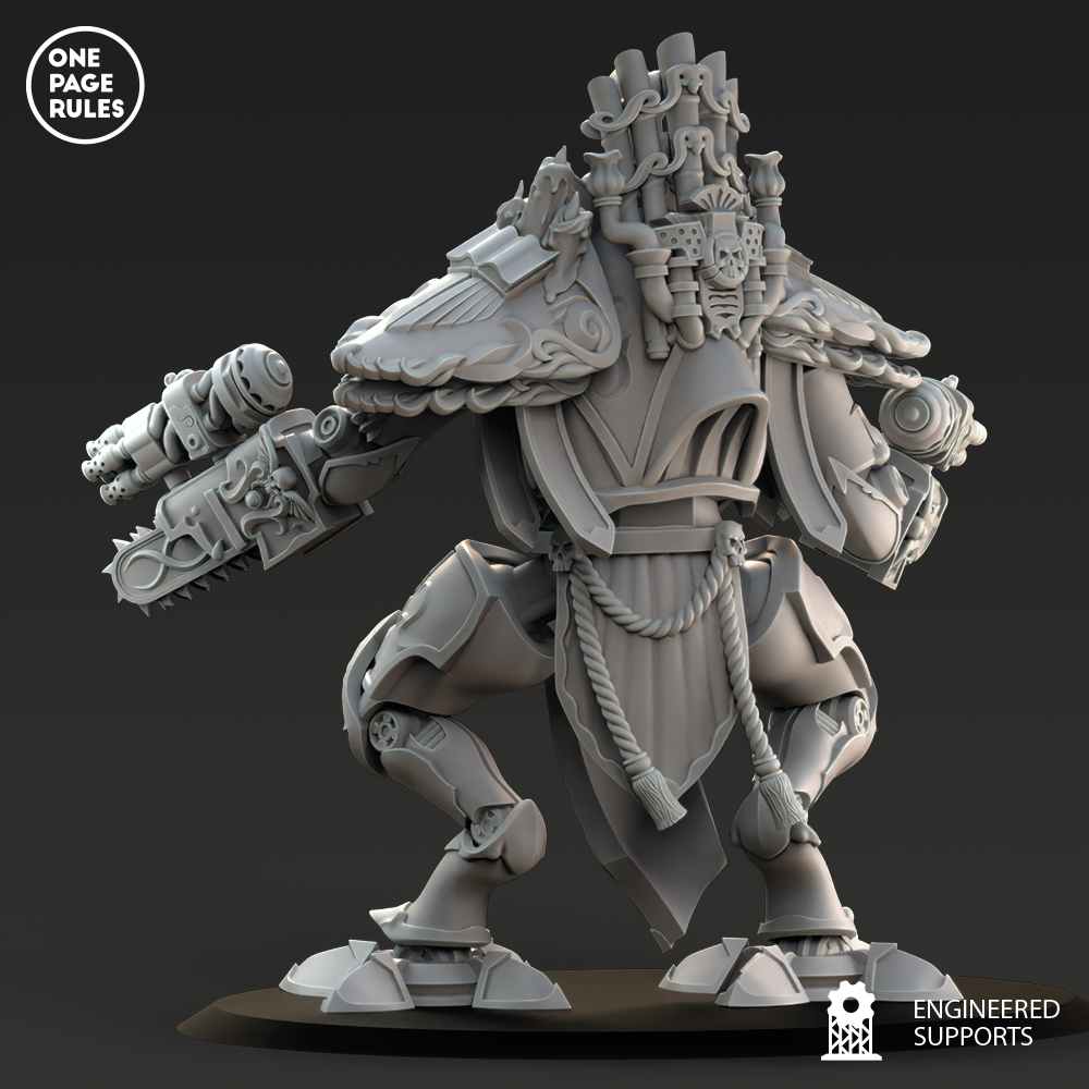 Chaque pas résonne comme une prière, chaque coup porté comme un châtiment divin. Recouvert de symboles brûlés au chalumeau, d’icônes sacrées, et parfois de restes des ennemis purifiés, le Walker est autant une arme qu’un autel de colère mobile.
