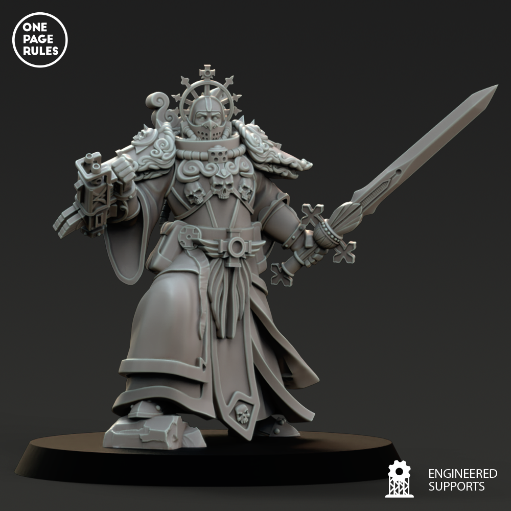 La Destroyer Superior est la furie incarnée de l’Empereur, la sœur qui a abandonné la contemplation, la prière posée, et même la parole pour ne parler que par l’impact, la rupture et l’explosion. Choisie parmi les fanatiques les plus indomptables, elle a été reforgée en arme vivante, un exosquelette lourd scellé autour d’un cœur consumé par la foi.