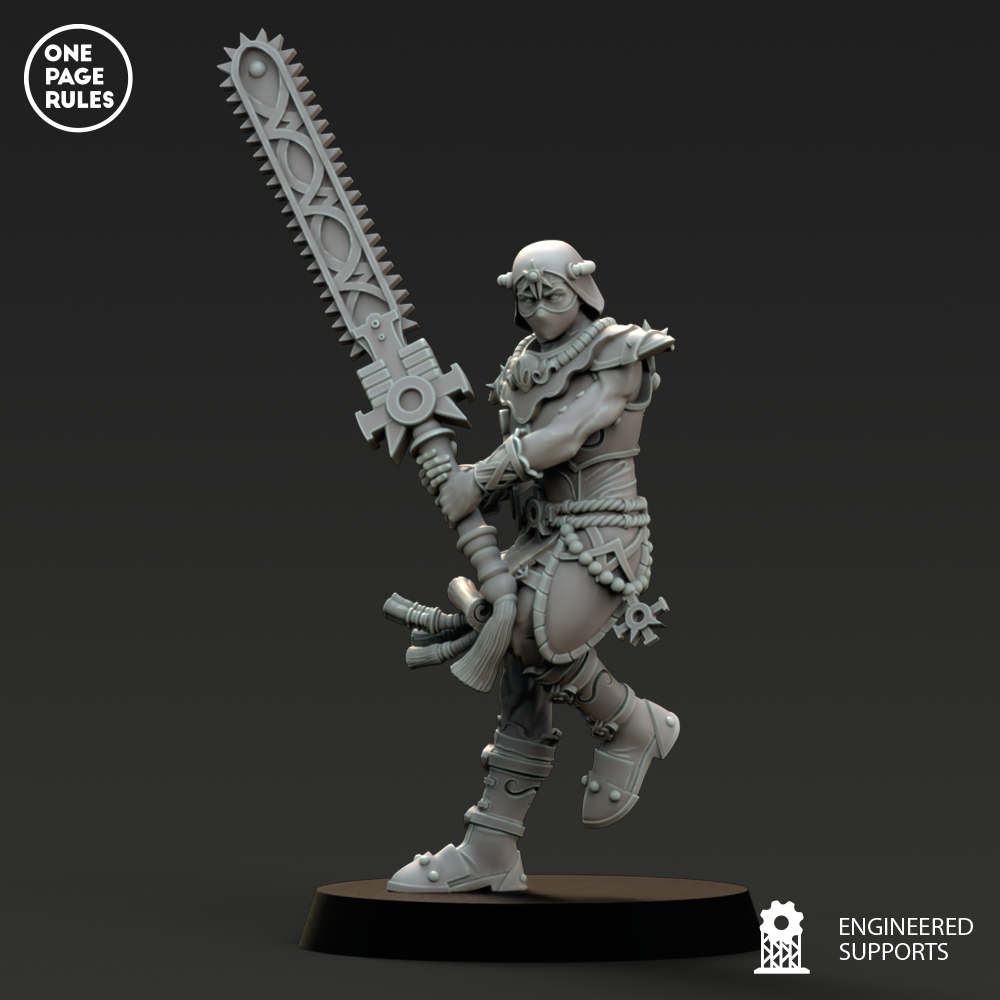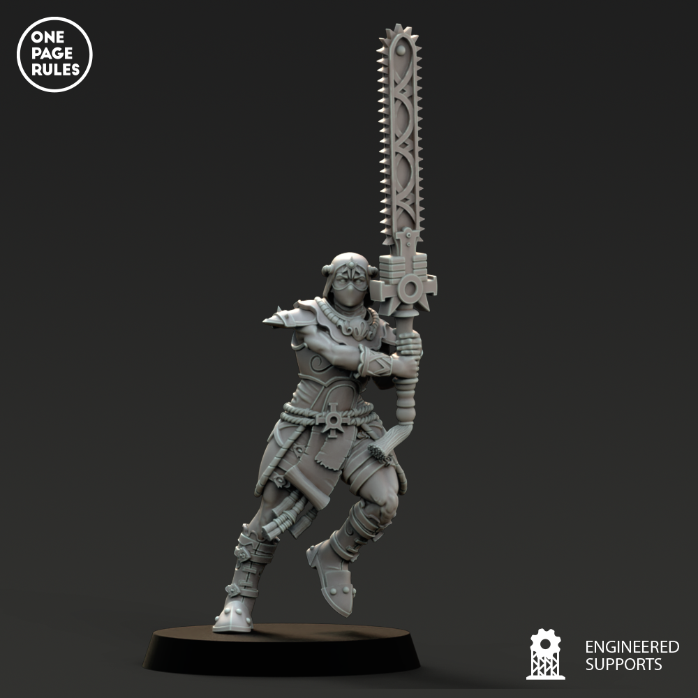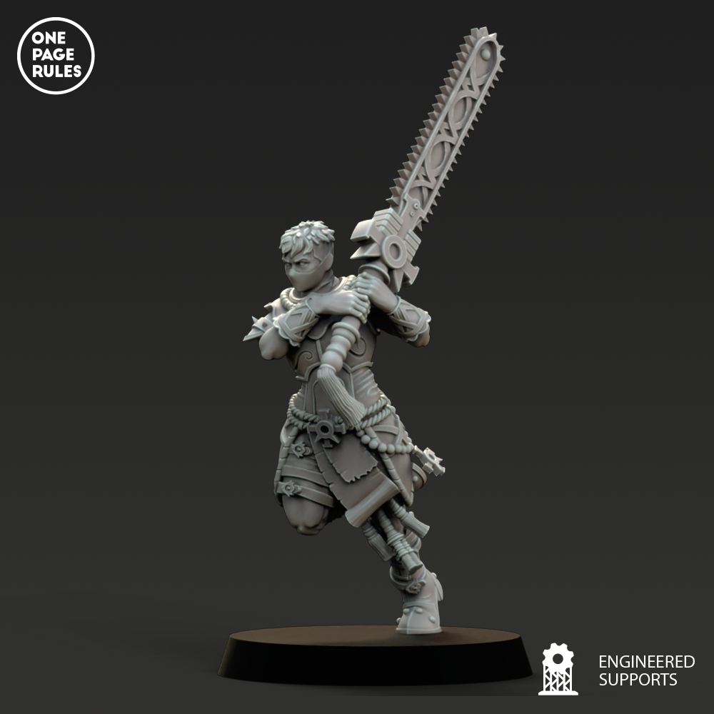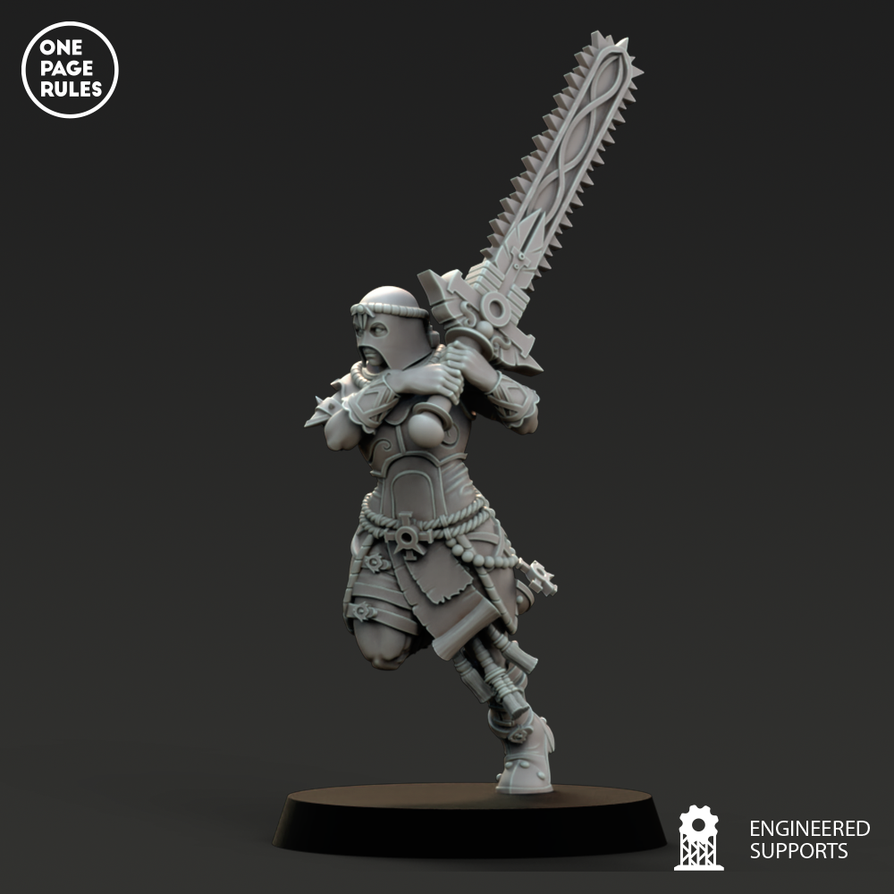 Les Fanatics des Blessed Sisters sont des guerrières dévouées qui se jettent sur l’ennemi avec une ferveur incontrôlable. Armées uniquement de leur épée tronçonneuse et de leur foi inébranlable, elles avancent sans peur, prêtes à offrir leur vie pour purifier le champ de bataille.