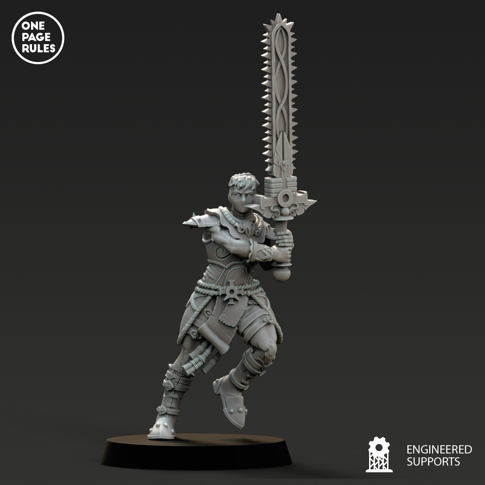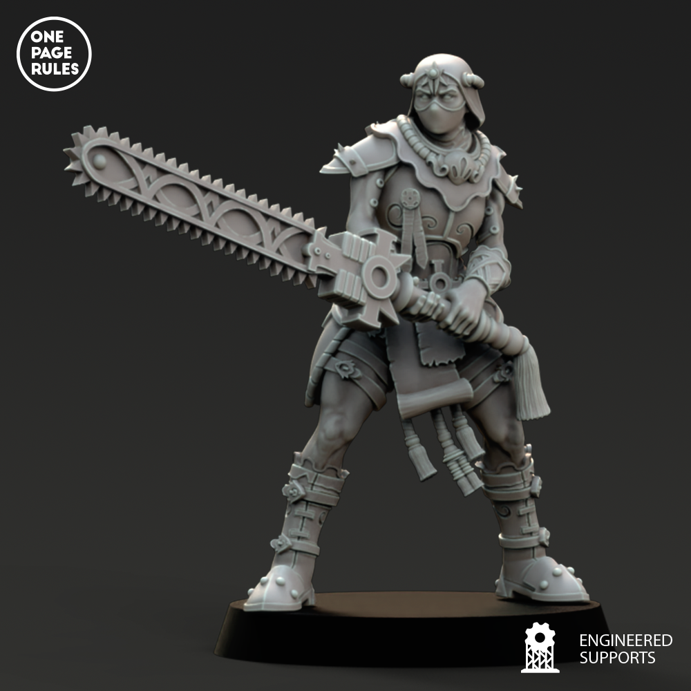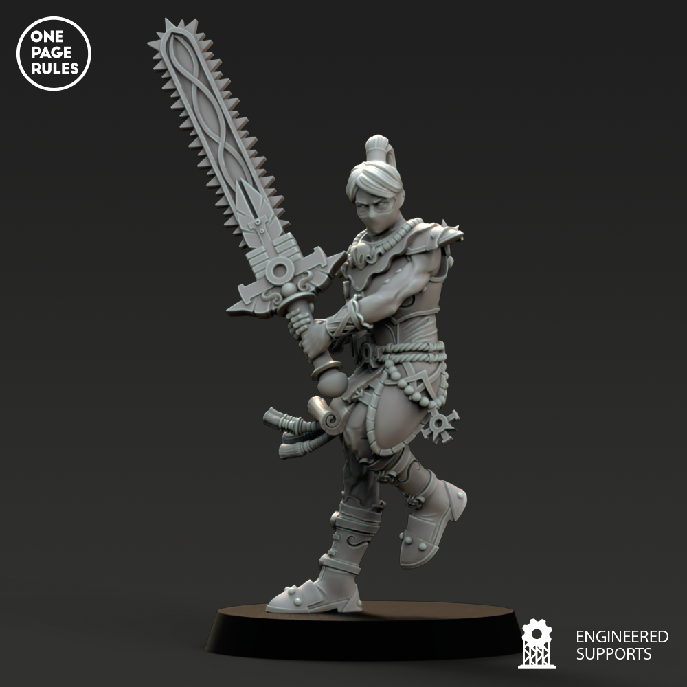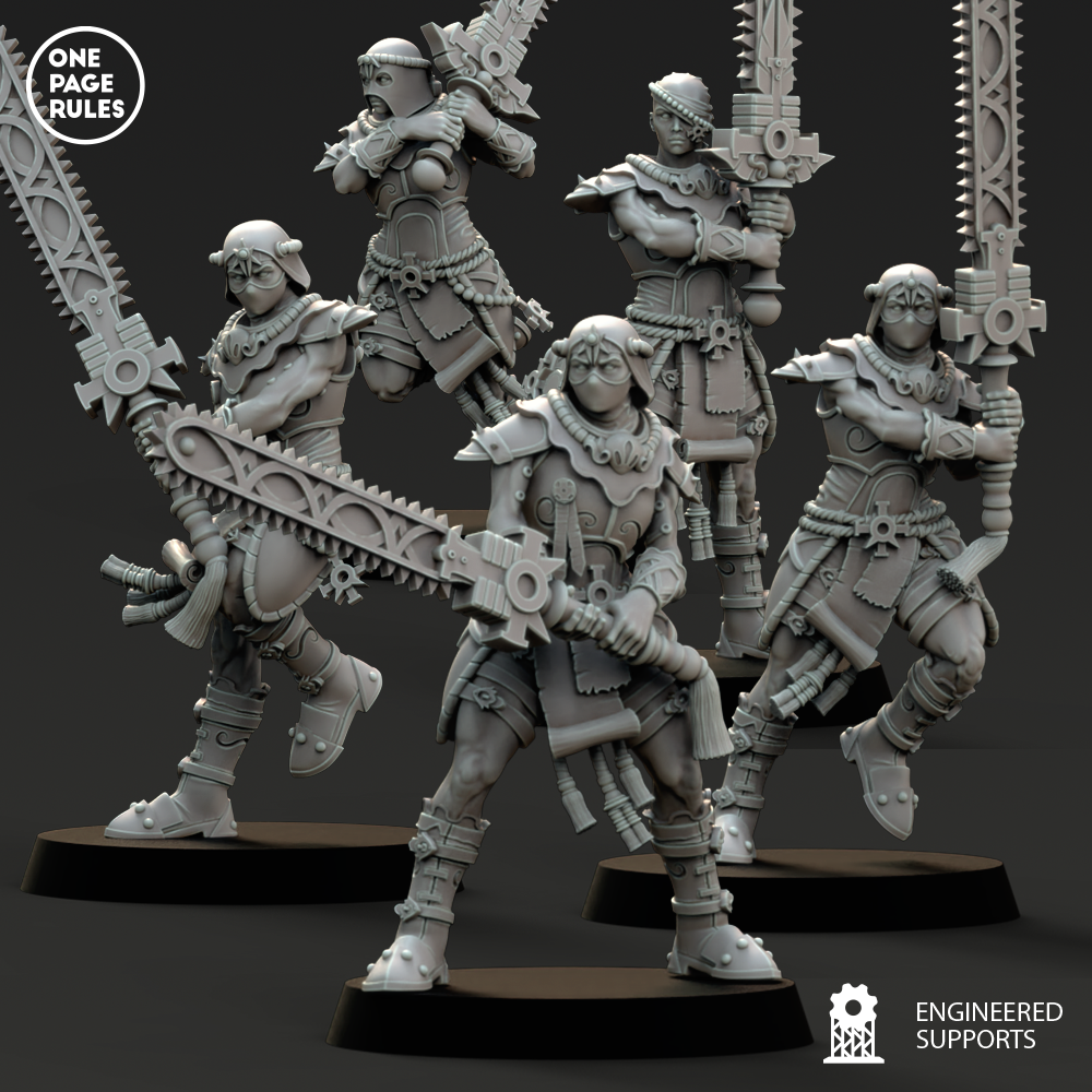 Les Fanatics des Blessed Sisters sont des guerrières dévouées qui se jettent sur l’ennemi avec une ferveur incontrôlable. Armées uniquement de leur épée tronçonneuse et de leur foi inébranlable, elles avancent sans peur, prêtes à offrir leur vie pour purifier le champ de bataille.