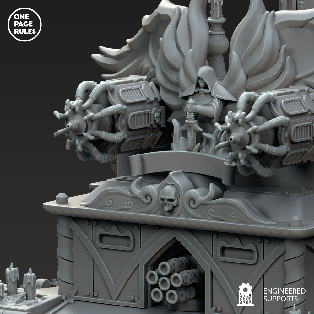 L’Infernal APC des Blessed Sisters est bien plus qu’un simple véhicule de transport : c’est un bélier blindé trempé dans les flammes de la foi, conçu non seulement pour acheminer les sœurs au cœur du conflit, mais aussi pour purifier l’ennemi sur son passage. Là où l’APC classique protège et transporte, l’Infernal APC brûle, écrase et exorcise.
