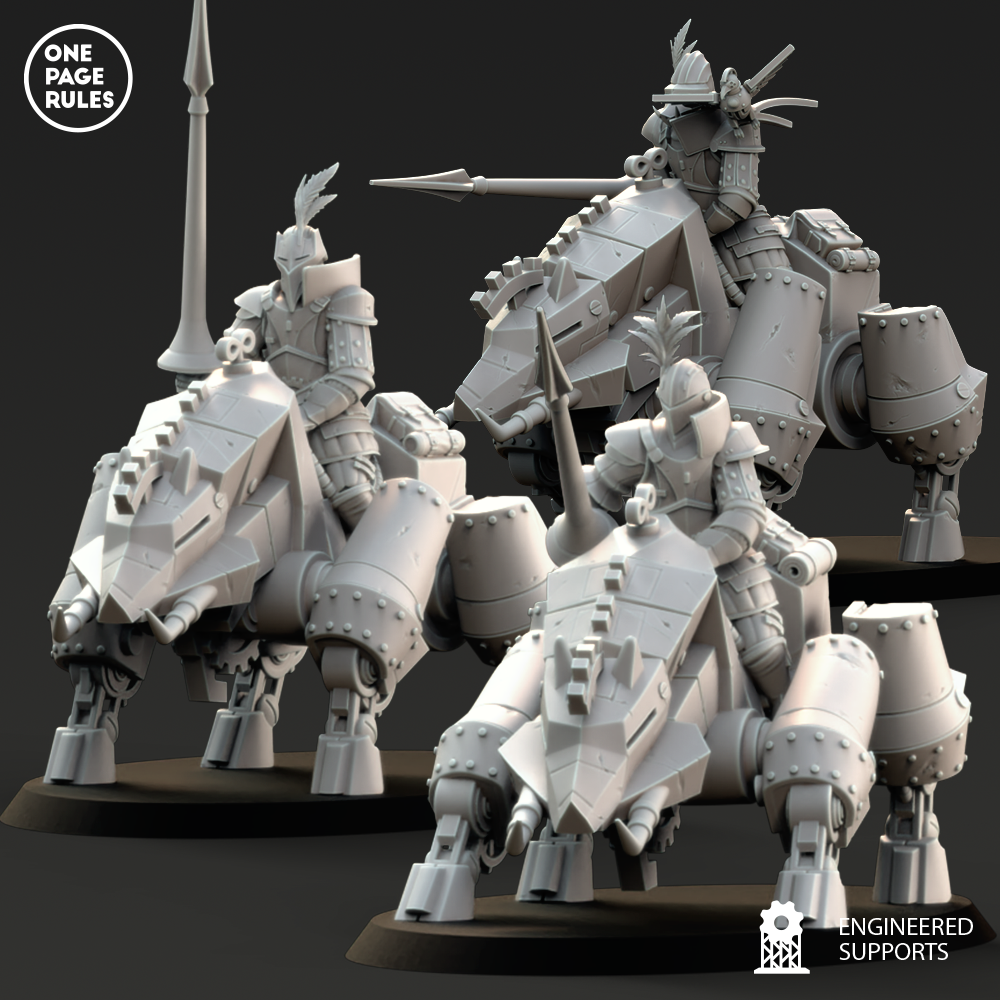 La Heavy Cavalry des Duchies of Vinci représente l’apogée de la discipline militaire combinée à l’ingénierie blindée. Chaque cavalier est une forteresse mobile montée sur une monture mécanique conçue pour supporter l’impact d’une charge à pleine vitesse tout en restant maniable dans les ruelles d’une cité ou sur un champ de bataille ouvert.
