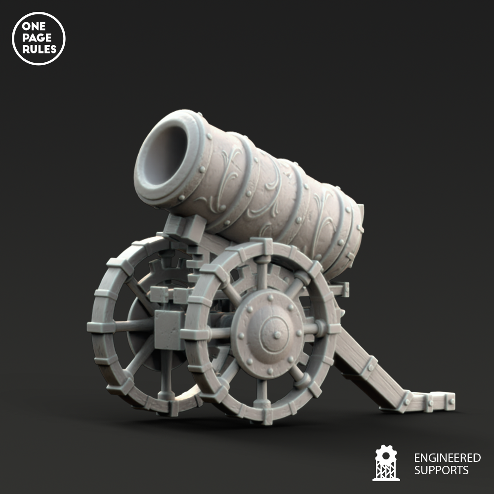 Le canon est alimenté par un mélange de poudre alchimique et de propulsion vapeur, projetant des obus de cuivre gravés, parfois remplis de substances spéciales.