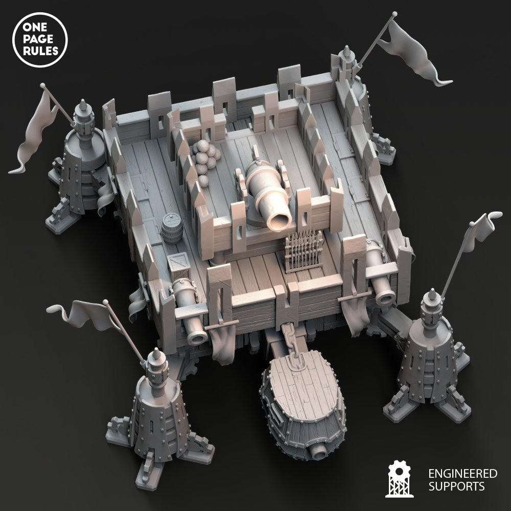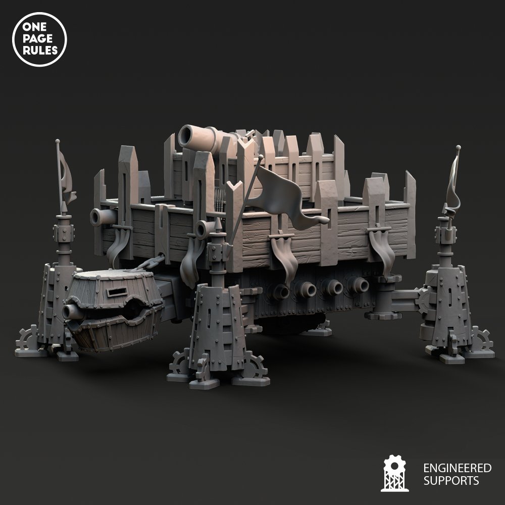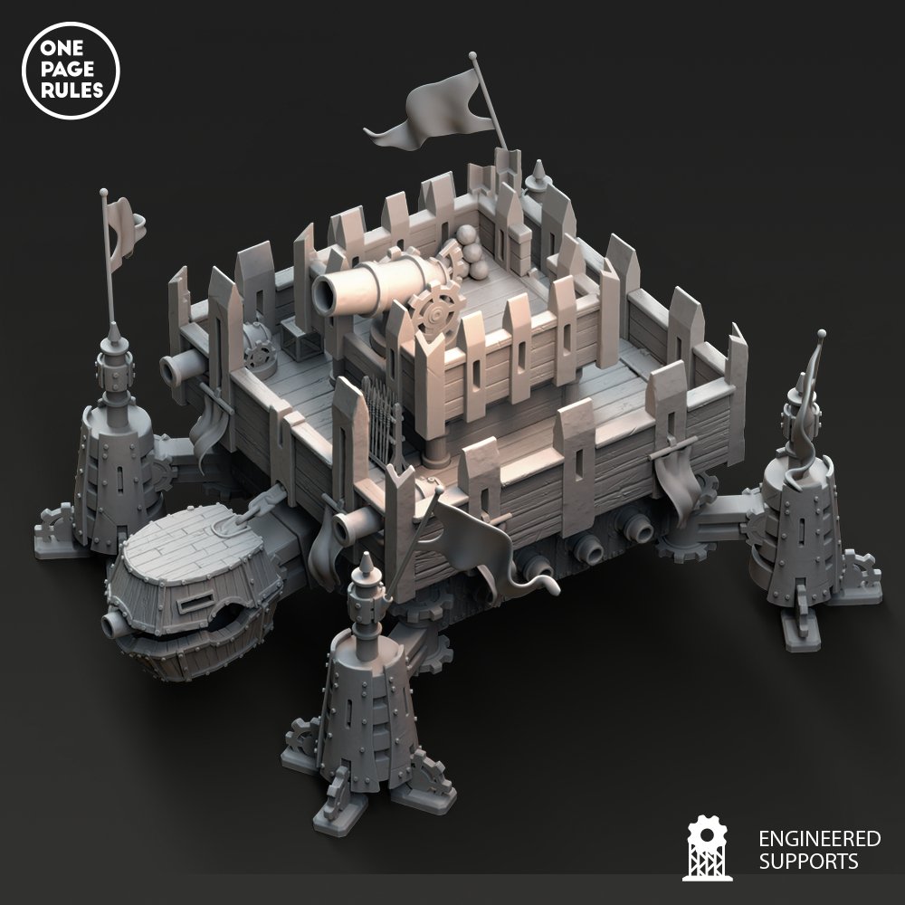 Capable d’embarquer une unité dans son ventre blindé, d’abriter un commandant stratégique, ou de saturer l’ennemi de tirs croisés, la Walking Fortress devient le cœur d’un plan de siège, le bastion central d’une défense, ou l’ultime rempart d’une contre-offensive.