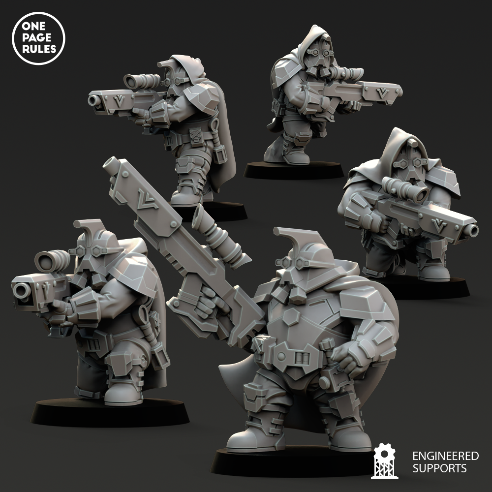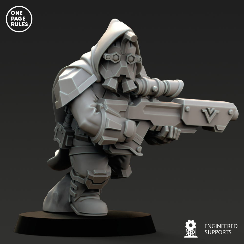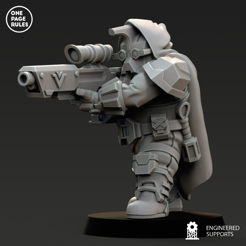 Les Snipers des Dwarf Guilds sont les tireurs d’élite les plus précis de leurs cohortes. Armés de fusils perfectionnés et de lunettes de visée calibrées dans les profondeurs des forges ancestrales, ils éliminent les officiers, sorciers, opérateurs ou tout autre élément critique sur le champ de bataille, un tir après l’autre.