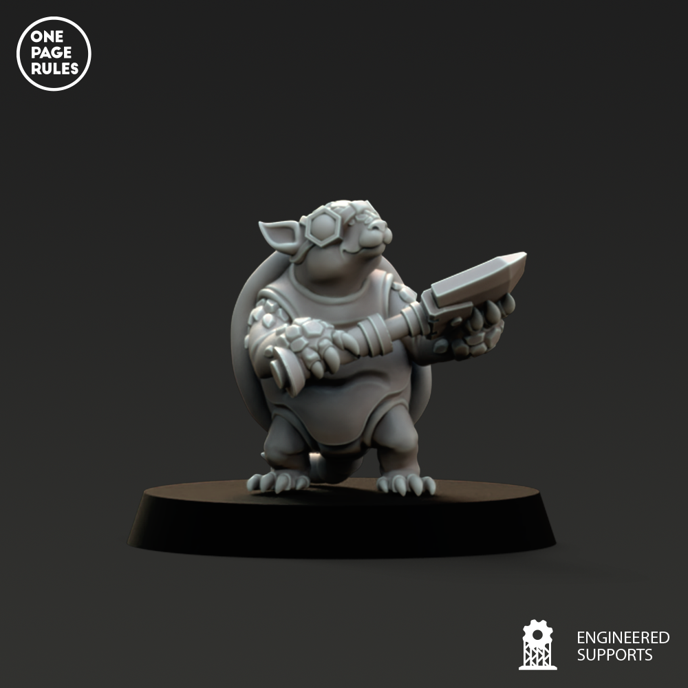 - Base : Inclus avec une base carré de 25 mm ou 1 socle rond de 32 mm, idéale pour une stabilité parfaite et une intégration aisée sur les plateaux de jeu.