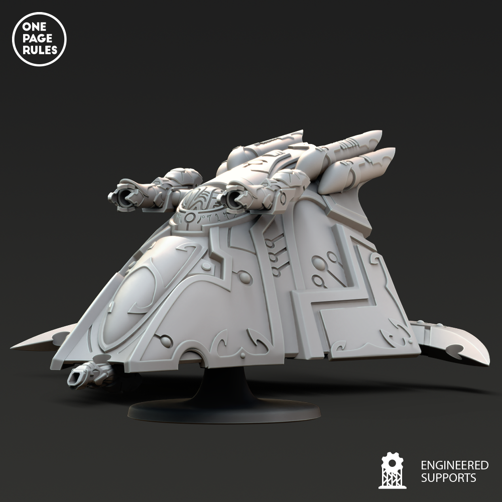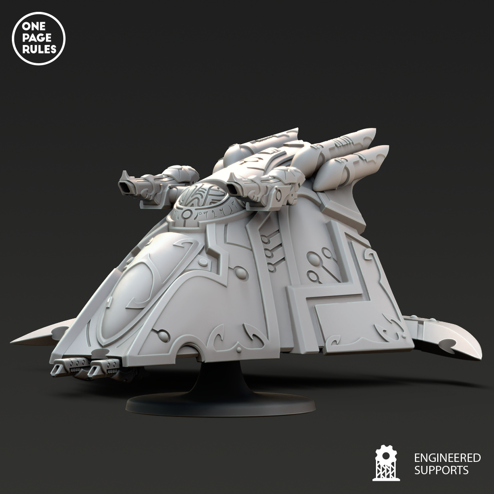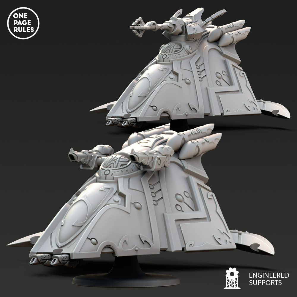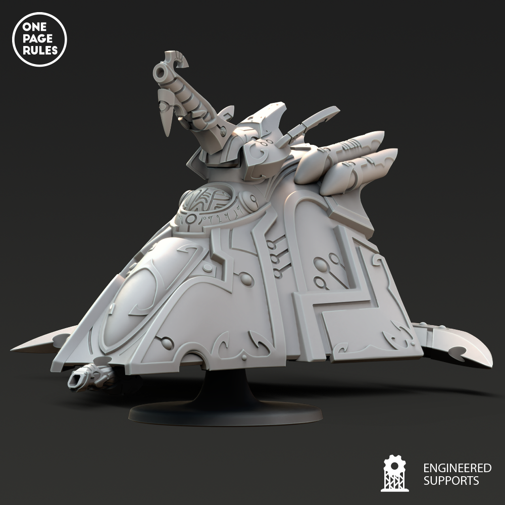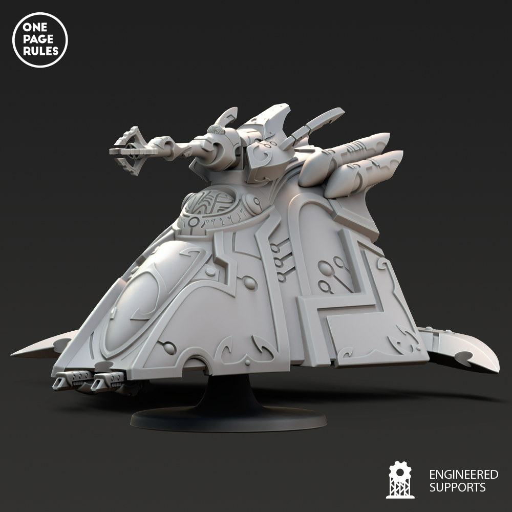 Le Tank des High Elf Fleets est l’incarnation blindée de la discipline elfique, combinant technologie avancée, design harmonieux, et puissance destructrice ciblée. Il est conçu non pas comme une bête de guerre brute, mais comme une plateforme de tir de précision mobile, capable de soutenir l’infanterie, bloquer les avancées ennemies, et anéantir les menaces stratégiques.
