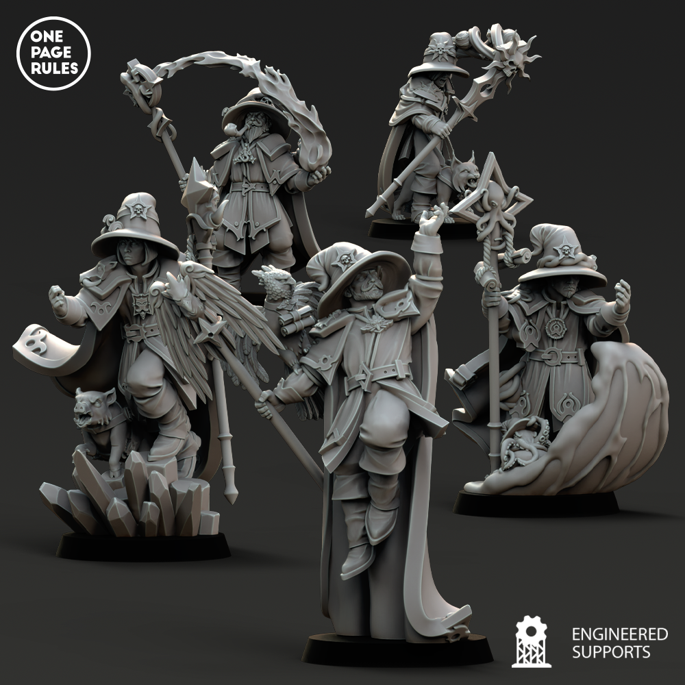• Le contenu de l’unité se compose  de 5 socle carré de 25 mm ou 5 socle rond de 32 mm permettant d’assembler 5 Battle Mages.