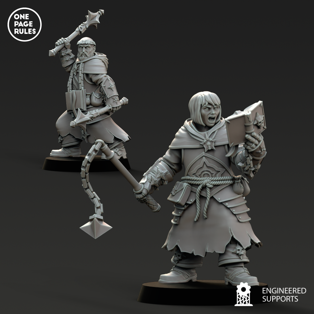 • Le contenu de l’unité se compose  de 2 socle carré de 25 mm ou 2 socle rond de 32 mm permettant d’assembler 2 Cleric.