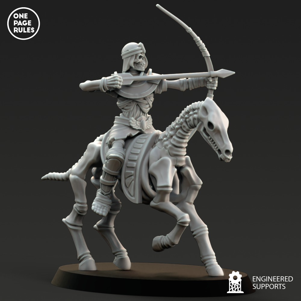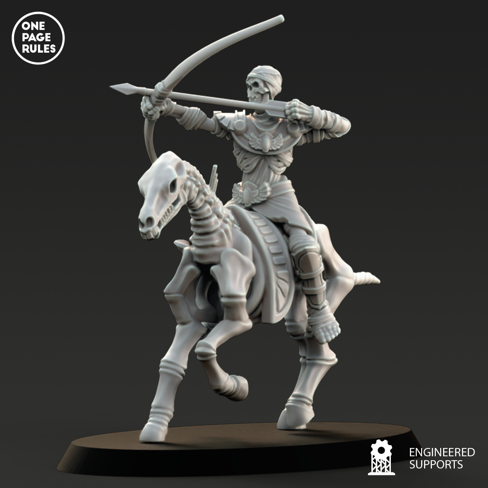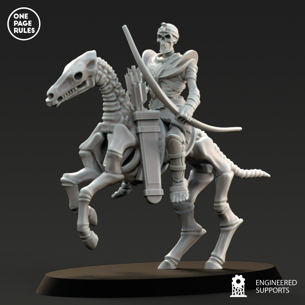 Les Horse Archers des Mummified Undead sont les spectres galopants d’anciens éclaireurs impériaux, liés éternellement à leurs montures momifiées ou squelettiques. Dans la vie, ils étaient les yeux et les flèches de l’empire ; dans la mort, ils sont devenus des ombres rapides traversant les dunes, décochant leurs projectiles silencieux comme des malédictions lancées dans le vent.