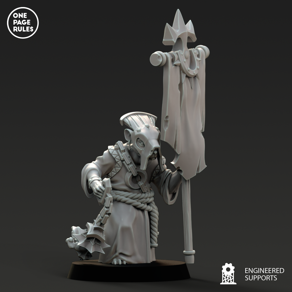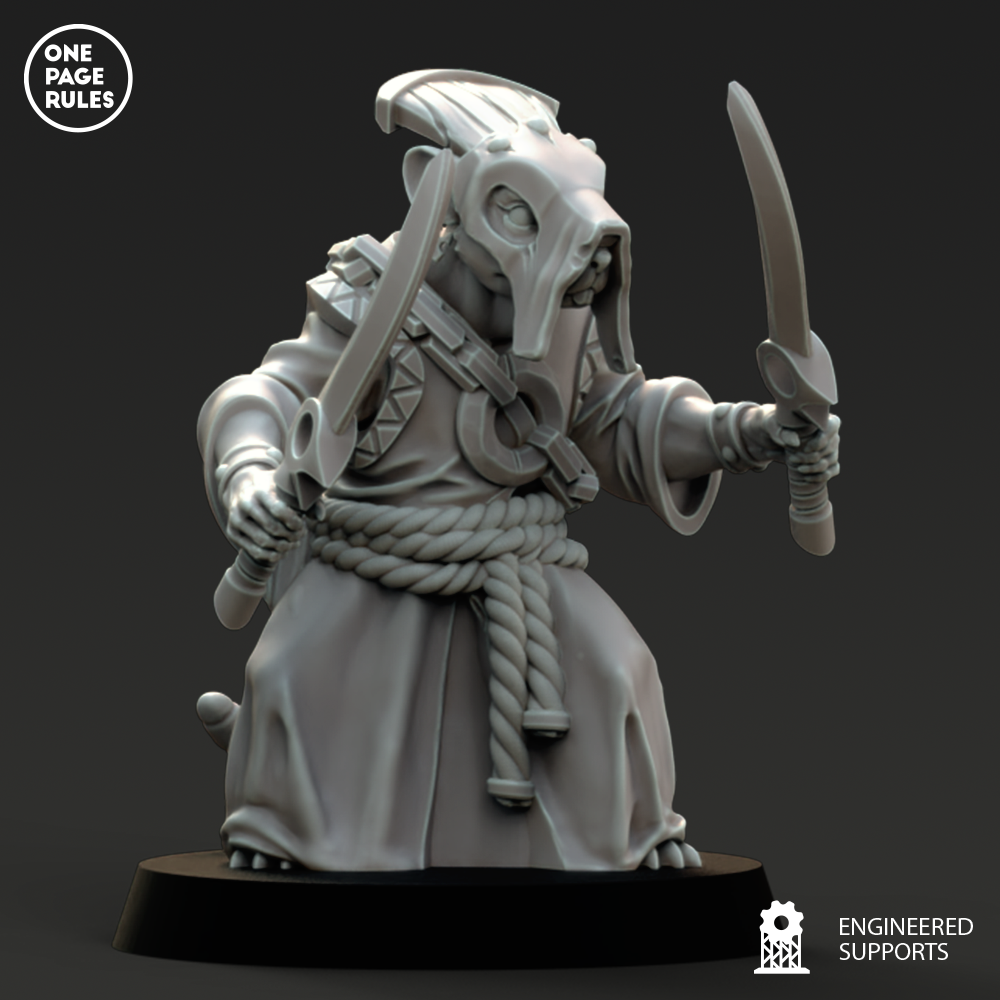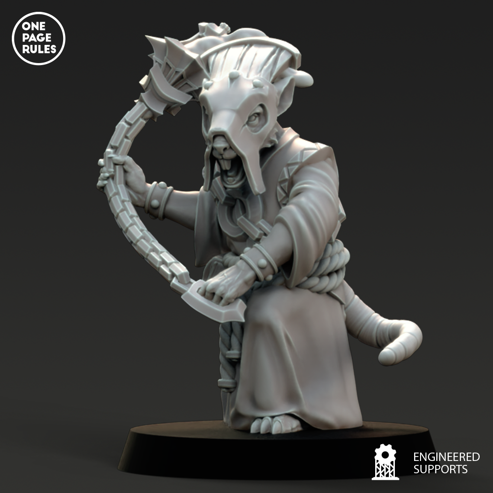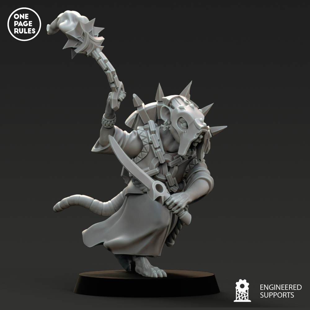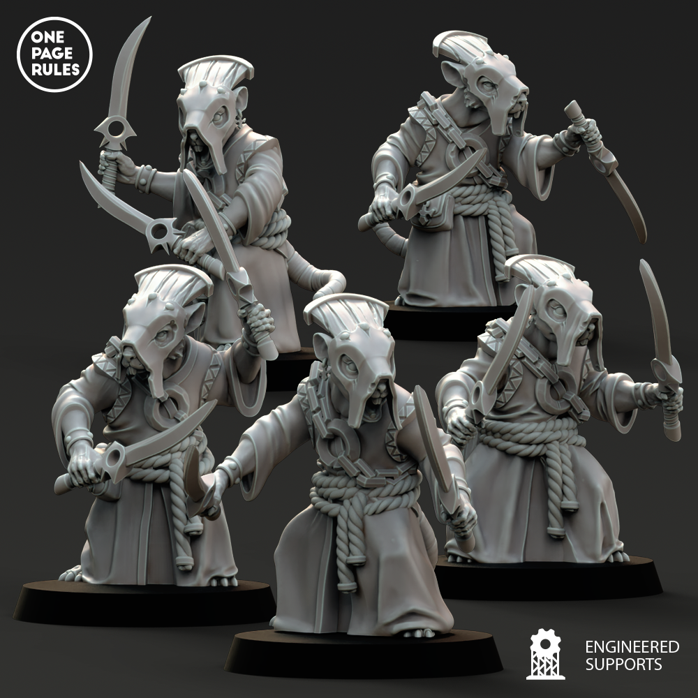 Les Monks des Ratmen ne sont pas de paisibles méditants. Ce sont des fanatiques en robe déchirée, remplis de toxines, de pustules et de convictions violentes. Ils avancent en psalmodiant des prières à voix aiguë, tournoyant avec leurs armes rouillées, frappant au nom d’un dieu souterrain qui réclame des corps et de la fièvre.