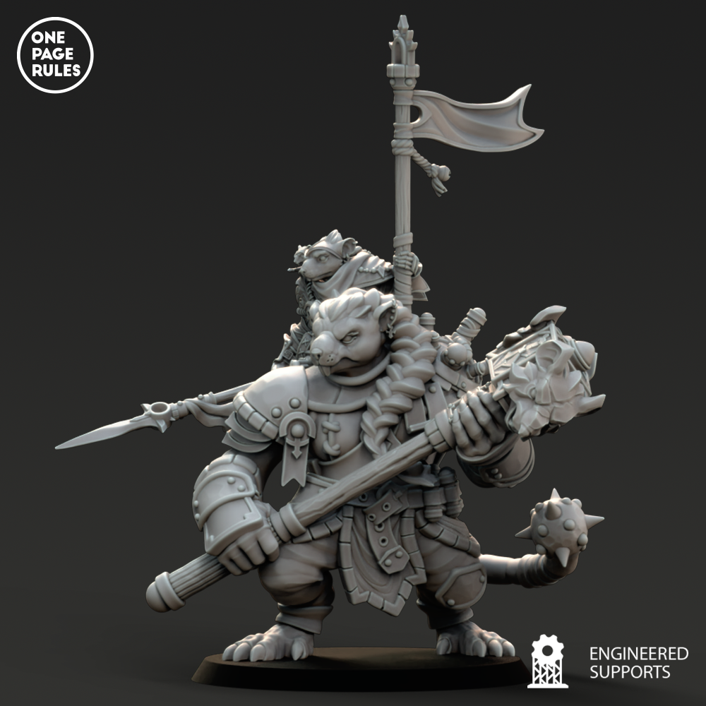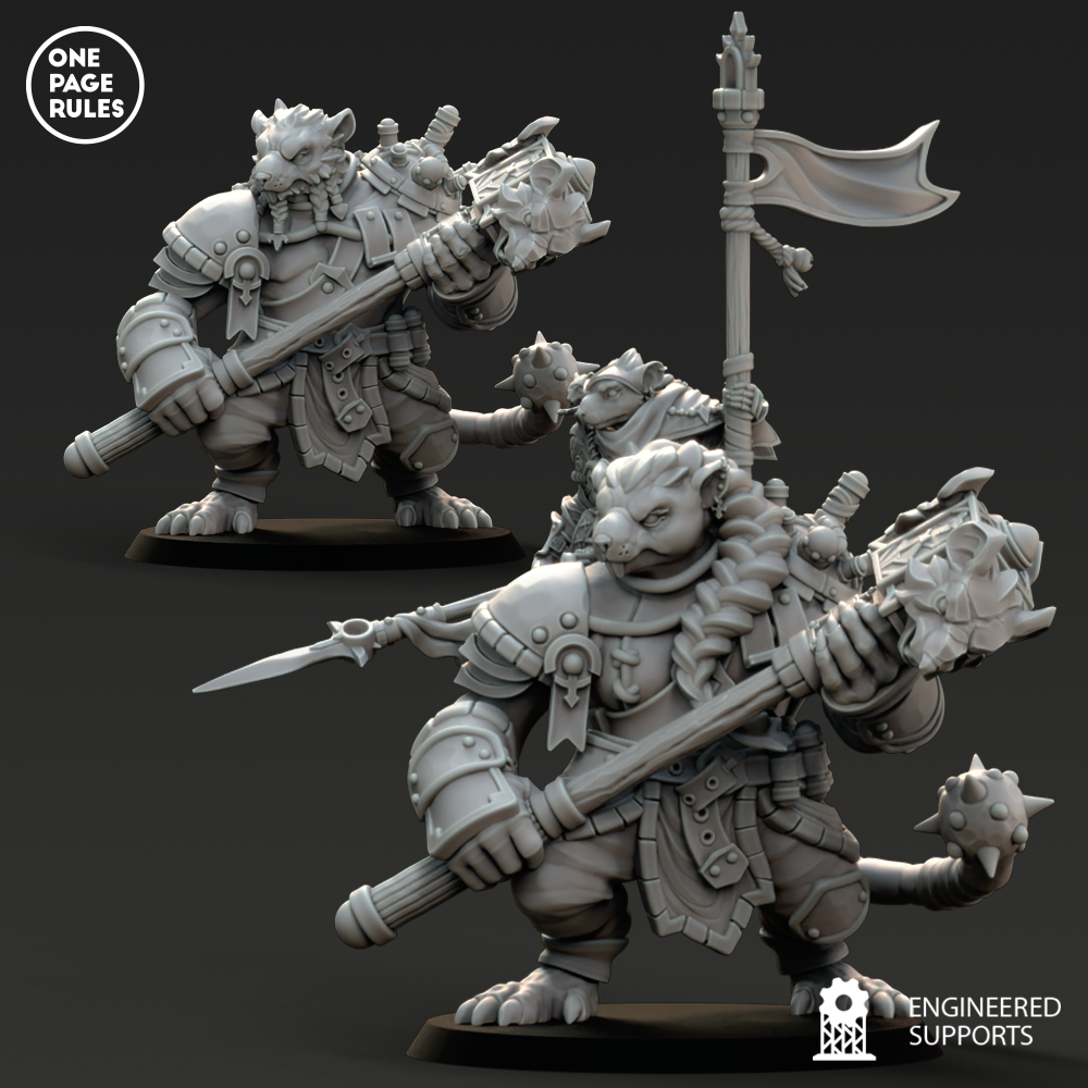 Le Ogre Captain est un chef ratmen qui a survécu assez longtemps – ou trahi suffisamment de rivaux – pour mériter une monture : un gigantesque Rat Ogre harnaché de chaînes, de plaques d’armure et de rages contenues. Ce duo forme un symbole vivant de puissance brute et de terreur, capable d’écraser, broyer et rugir plus fort que tout ce qui ose lui barrer la route.