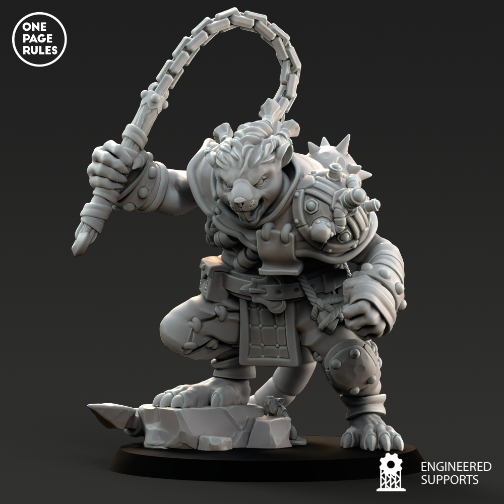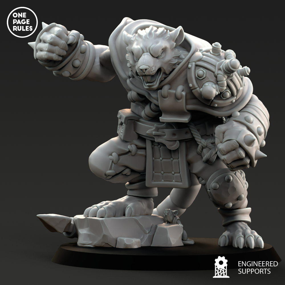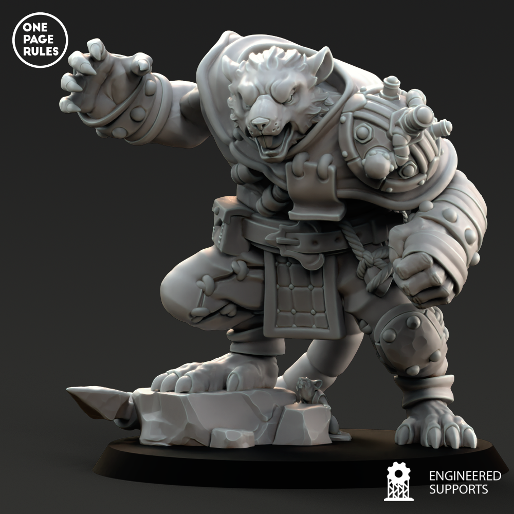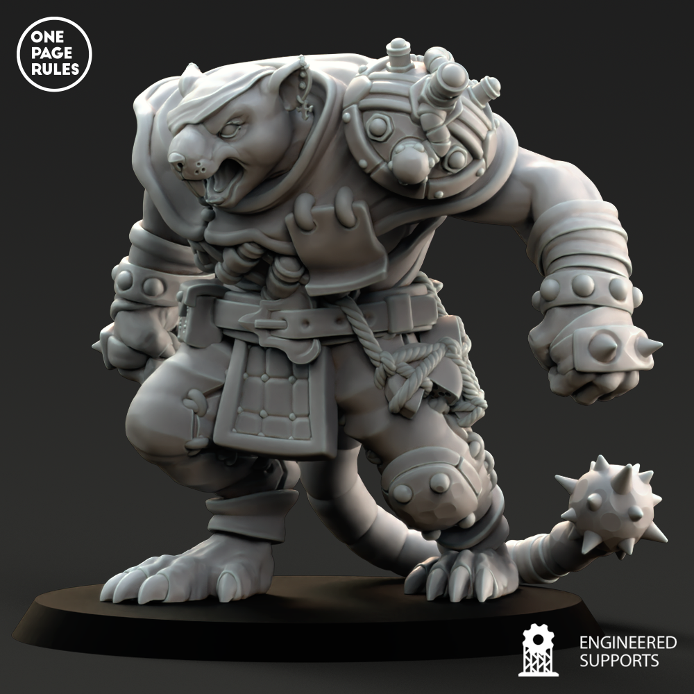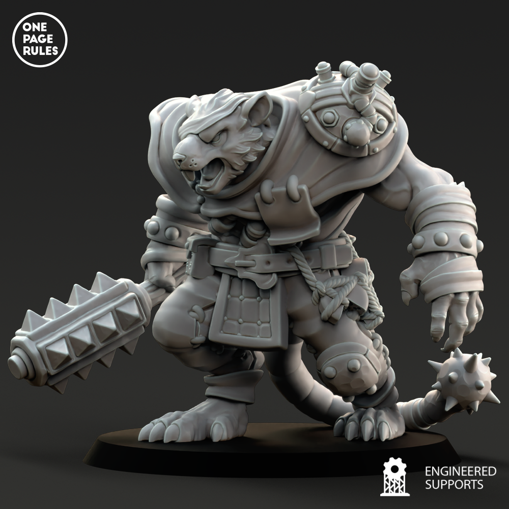 Le Rat Ogre est l’une des plus terrifiantes aberrations engendrées par la science tordue des Ratmen. Né dans les laboratoires fétides du sous-monde, forgé par des manipulations génétiques, des injections de stimulants et une absence totale d’éthique, ce monstre de muscle incarne la force brute et la rage incontrôlée.