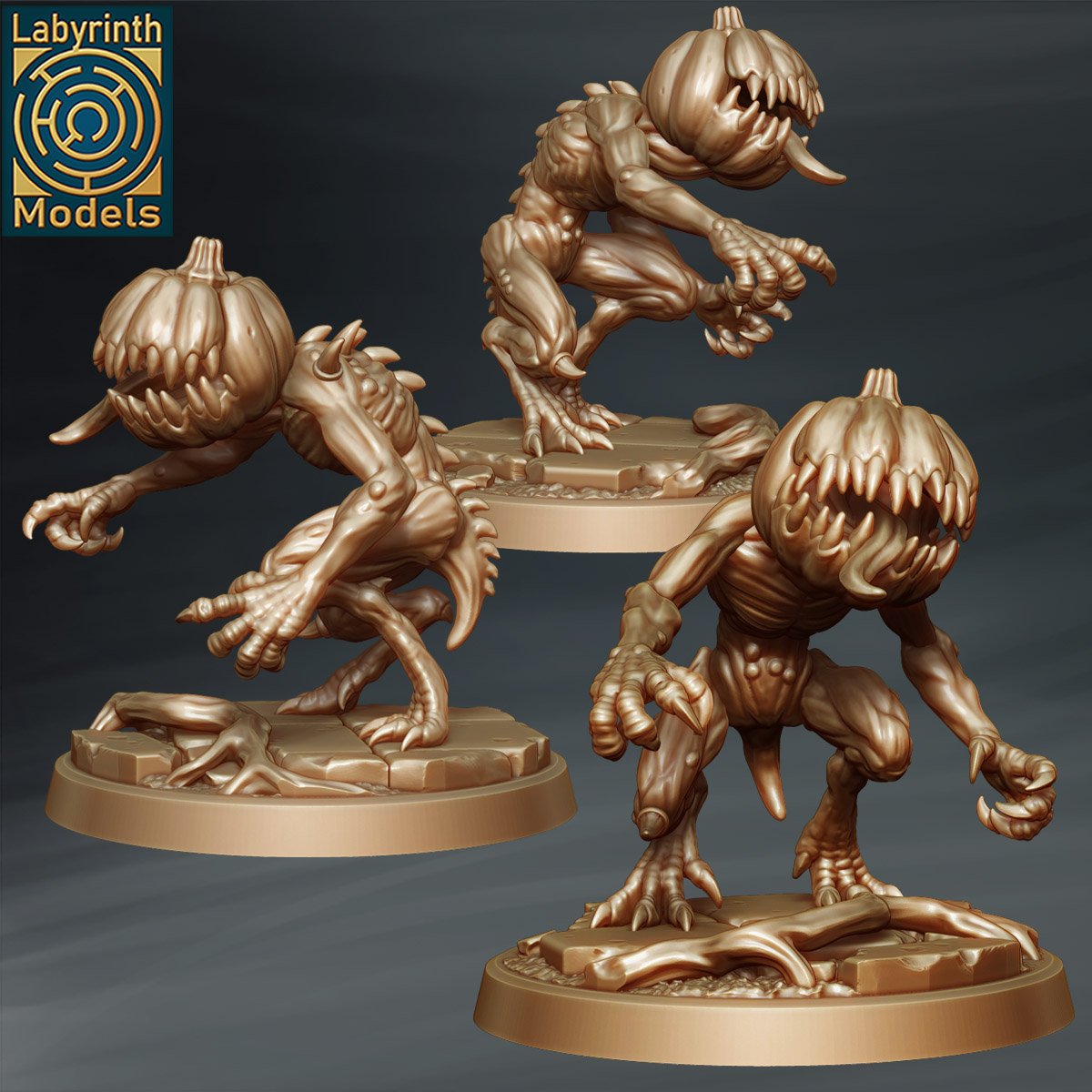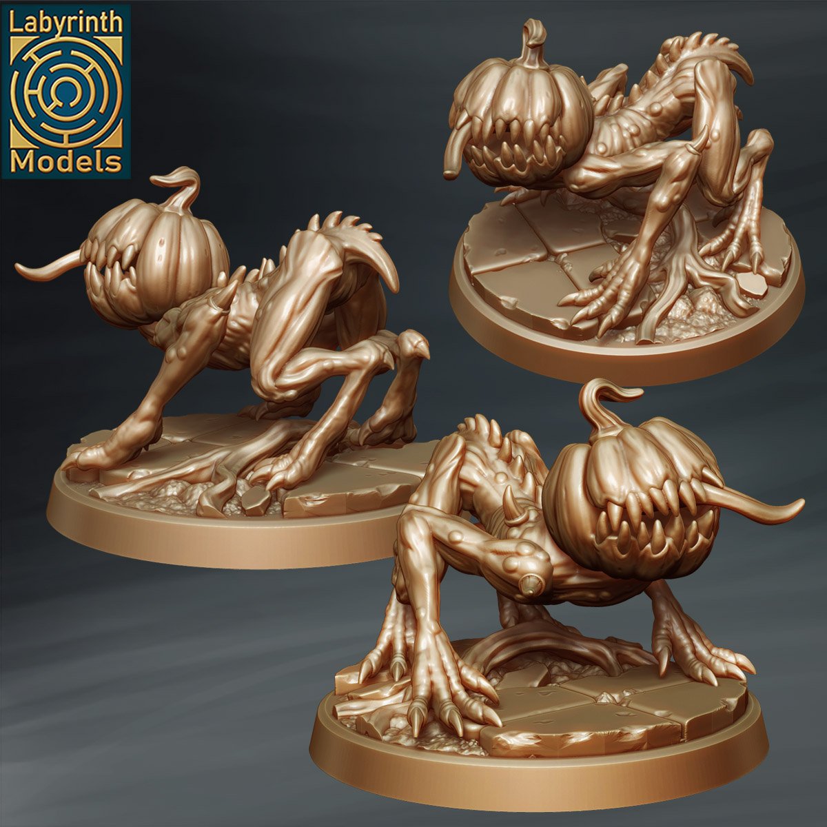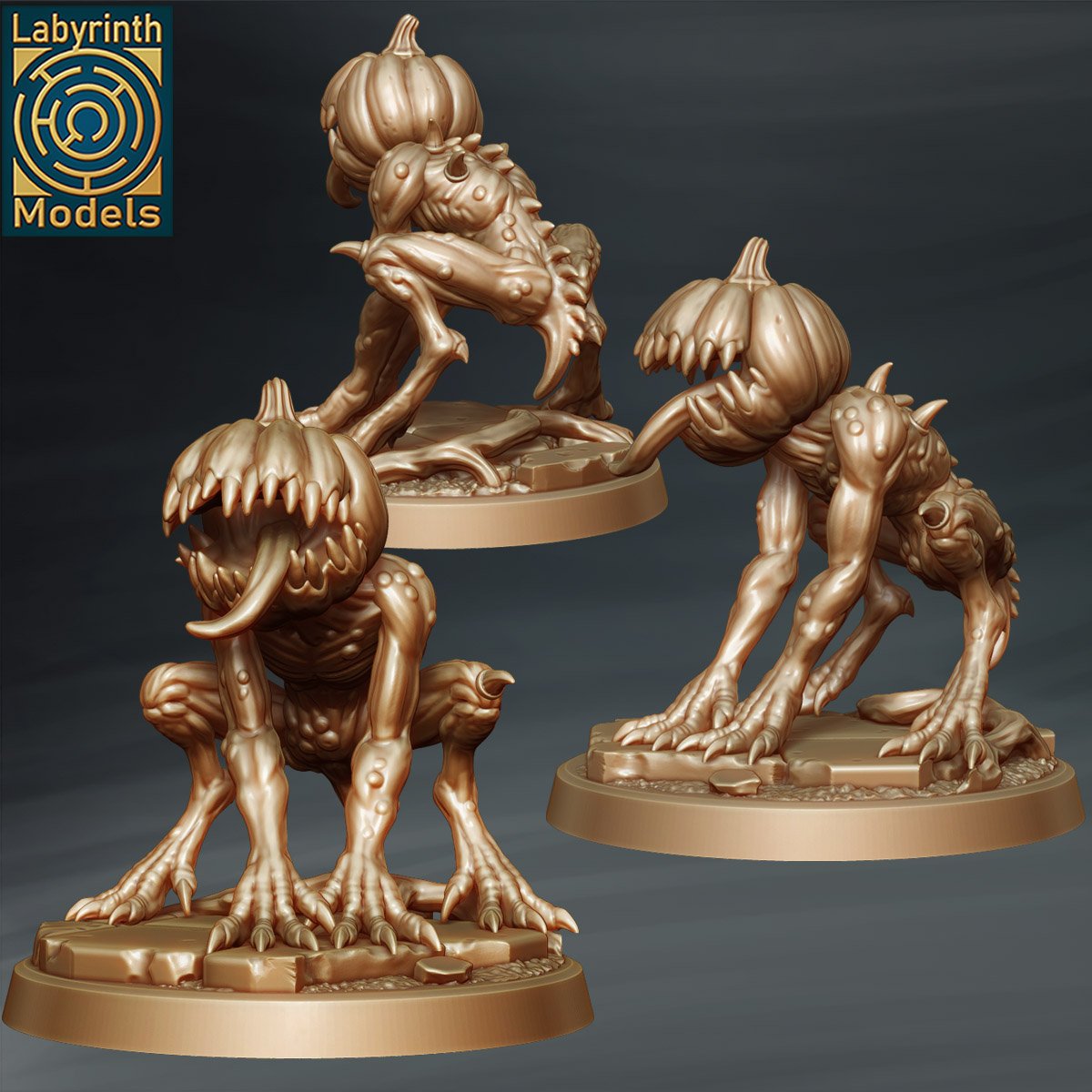 Semez la peur avec les Spitegourds, 3 figurines en résine haute qualité (28–32 mm) incarnant des abominations végétales corrompues aux têtes de citrouilles grotesques. Poses dynamiques (furtivité, bond, attaque), griffes acérées et textures organiques détaillées en font des créatures aussi dérangeantes qu’imprévisibles. Idéales pour wargames fantasy, JDR et dioramas, elles s’intègrent aux univers dark fantasy, horreur et nature corrompue, parfaites comme monstres atypiques ou gardiens de lieux maudits.